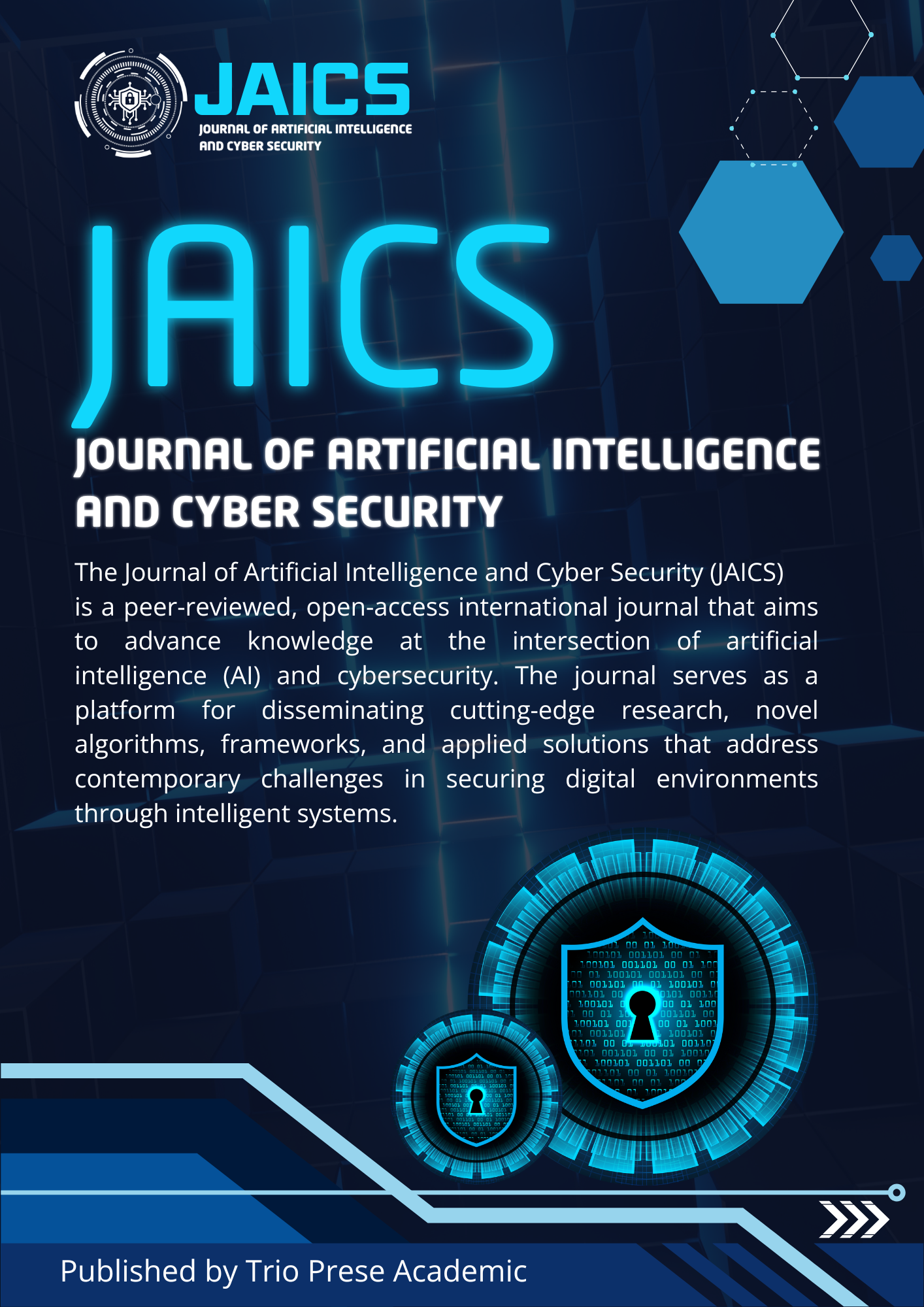 The Journal of Artificial Intelligence and Cyber Security is a peer-reviewed, open-access international journal that aims to advance knowledge at the intersection of artificial intelligence (AI) and cybersecurity. The journal serves as a platform for disseminating cutting-edge research, novel algorithms, frameworks, and applied solutions that address contemporary challenges in securing digital environments through intelligent systems. The journal welcomes high-quality original research articles, review papers, and technical reports in (but not limited to) the following areas: AI-based threat detection and prevention systems Machine learning and deep learning applications in cybersecurity Intelligent intrusion detection and anomaly detection systems Secure AI architectures and privacy-preserving AI Cyber threat intelligence and automated response mechanisms Adversarial machine learning and robust model design Blockchain and AI convergence in secure systems Ethical implications of AI in cybersecurity Trustworthy AI and secure data governance Cognitive security and autonomous defense systems. The journal encourages interdisciplinary and cross-sector research contributions that bridge theory and practice. It seeks to foster innovation that enhances the security, resilience, and trustworthiness of AI-driven systems and infrastructures.